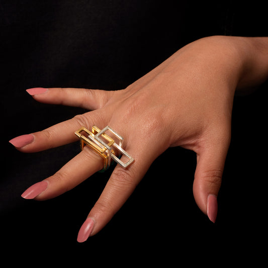 Lovelock Interlocking Architectural Ring Set | silver & gold