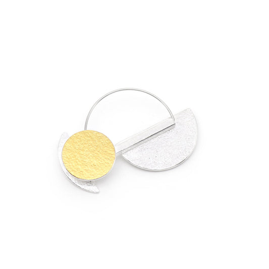 The Inversible Collection is heavily inspired by Bauhaus design aesthetic, using bold retro shapes to construct popping graphic forms. Statement pieces made of sterling silver and 24ct gold that are versatile and easy to wear. Using ancient Korean technique of Keum-boo to apply the 24ct gold to the surface of the silver.