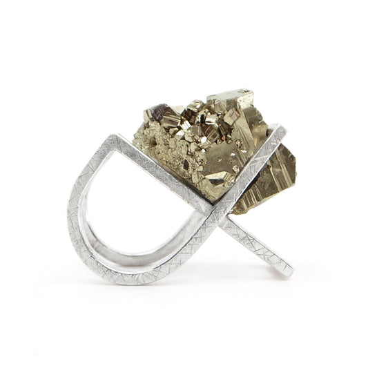 XL Chariot Statement Ring silver + pyrite | SIZE R