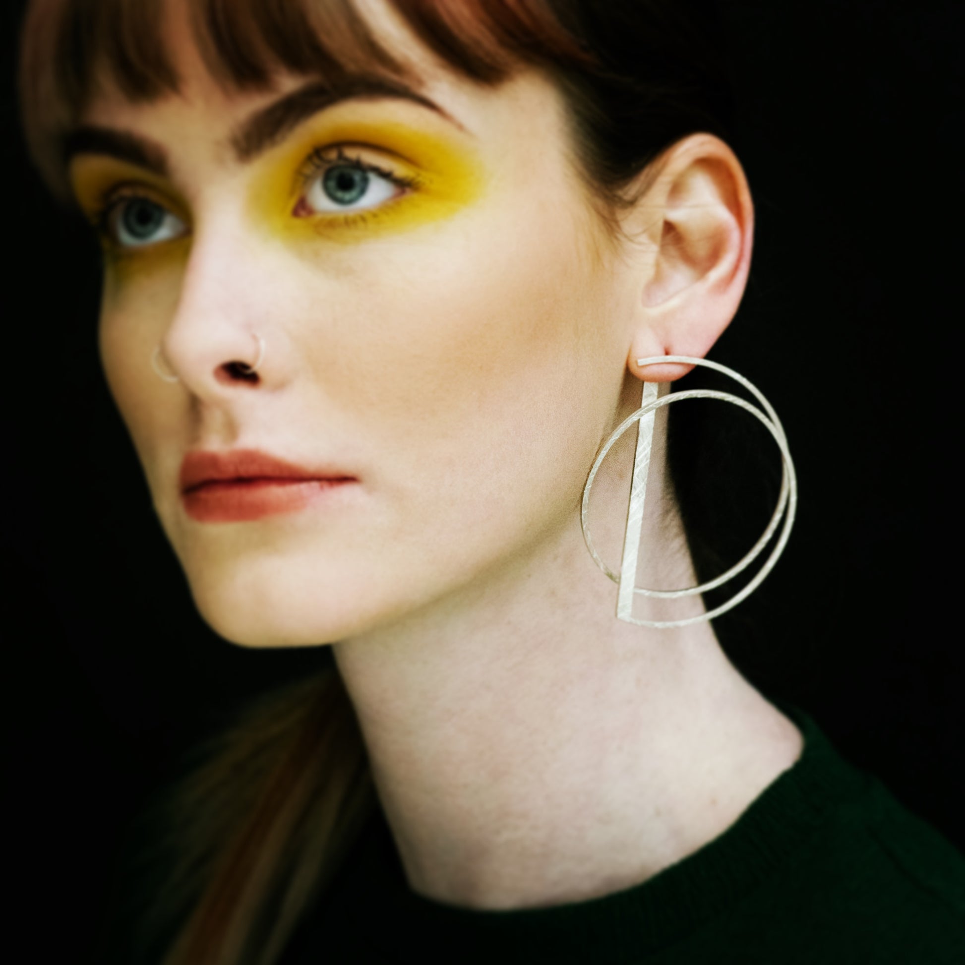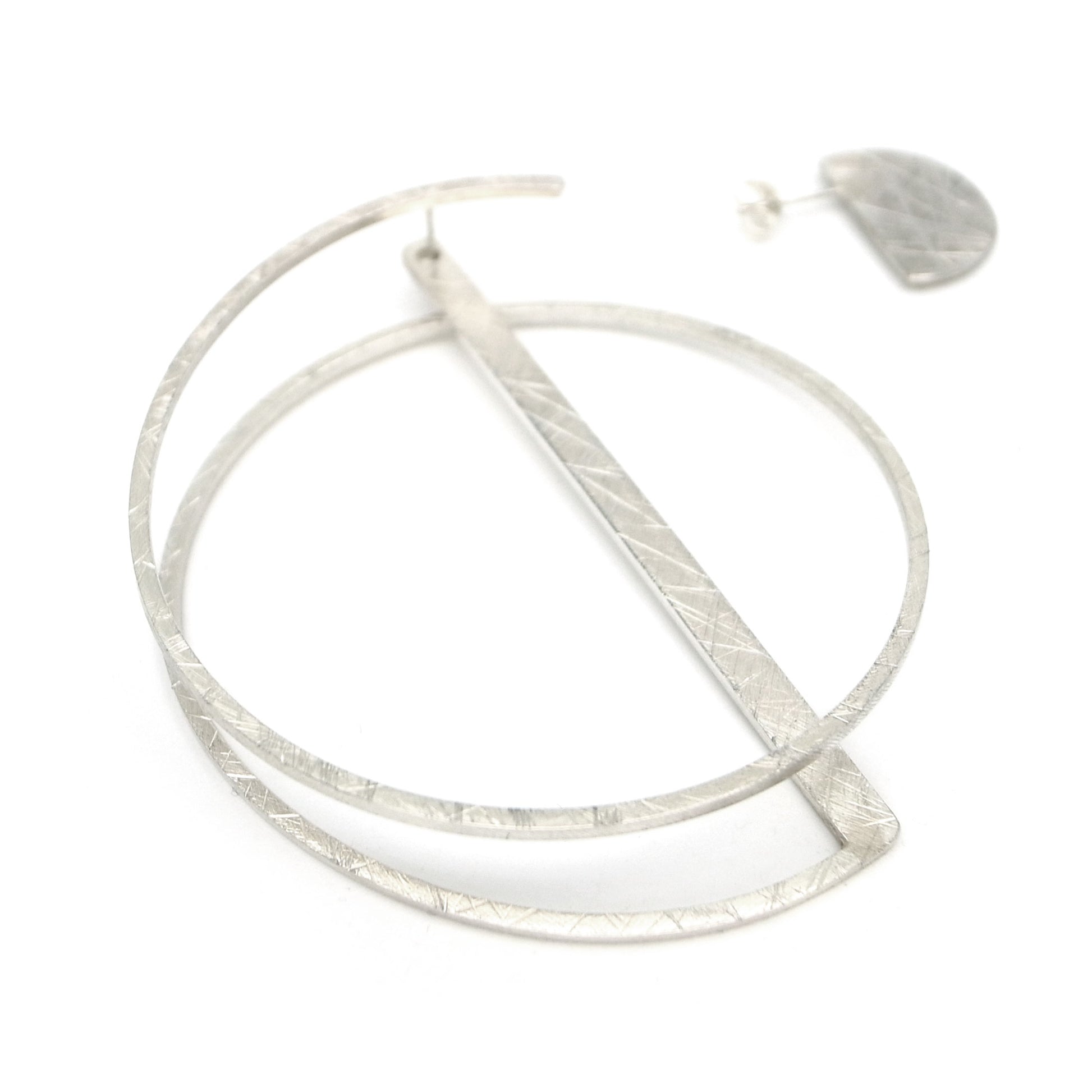 Handmade using traditional techniques and hallmarked, these contemporary silver earrings offer strong impact with a clean, modern finish for those who love modern geometric jewellery with edge, this mismatched pair delivers strong visual impact.